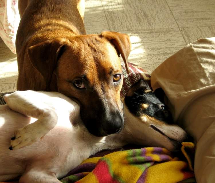 Daima a été trouvé dans la rue tout petit ; il est né et a grandi en Roumanie, en appartement puis en refuge (dans lequel le gardien est ultra-violent avec les chiens et où les chiens s'entretuent), adopté par moi-même à l'âge d'un an en France. Après un long voyage, il a entamé sa nouvelle vie à mes côtés, dans une peur panique de tout ce qui l'entourait, autres animaux, surtout les chiens, humains, contact physique et visuel, surfaces, bruits, objets, lieux,... toute nouveauté le mettait dans un état terrible. Avec beaucoup de travail de ma part, en me formant à l'entraînement en renforcement positif et en utilisant les fondations apprises lors de mes formations et expériences de psychologie, pour lui apprendre des choses, non seulement pour qu'il sache comment se comporter, pour pouvoir l'aider plus facilement mais aussi pour développer ses capacités cognitives - mémoire, réflexion, capacité d'analyse... -, et surtout le plus important, bâtir et entretenir un lien de confiance et de tendresse avec ce chien qui supportait si mal le contact physique ; en apprenant à aménager son environnement pour le rendre le plus sécure possible, Daima a pu accéder à un quotidien qui se veut le plus plaisant et épanouissant possible pour lui, serein, tendre et joyeux, et se faire des amis chiens et humains. Entraînement physique, entraînement aux soins collaboratifs (medical training), diversification alimentaire, jeux de recherche, travail sur la mémoire, l’olfaction, la proprioception, le contact physique pour l’apaisement et la guidance, massages, conduite en laisse, en liberté, apprentissage de la prise d’informations à distance,… vaste programme développé sur un peu moins de dix ans. Par la suite, nous mettrons en application ma formation sur le psychotraumatisme et plus spécifiquement le trouble de stress post traumatique. Cliquez ici pour voir la vidéo de présentation à Emma Parsons sur YouTube.